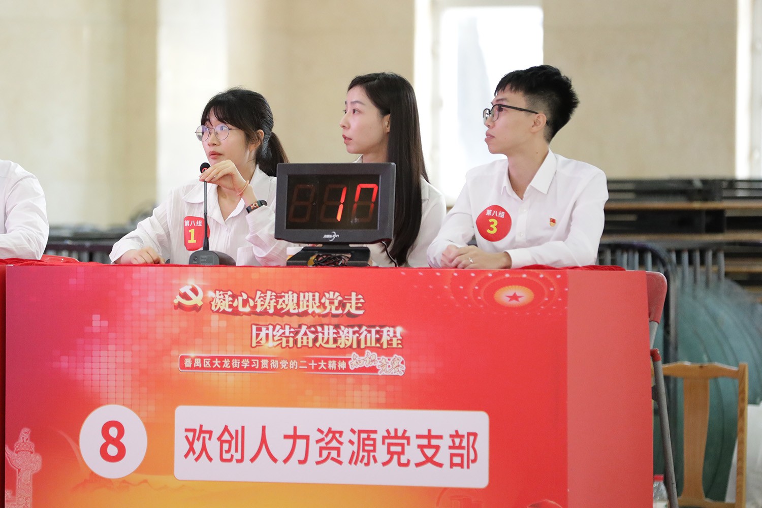 为庆祝建党102周年,6月29日下午,中共番禺区大龙街工作委员会联合番禺区融媒体中心于新水坑文化中心举办“学习贯彻党的二十大精神知识竞赛”活动。经过激烈角逐,欢创集团党支部代表队勇夺桂冠!
