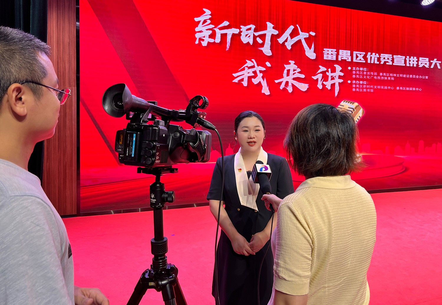 陈淼作为欢创集团党支部的入党积极分子及参赛代表,同时也是欢创企业大学的校长,她凭着专业而扎实的演讲实力,声情并茂地宣讲了优秀的欢创人全力抗击疫情及在党的引领下敢于挑战、不断创新,为番禺区高质量发展增添光彩的故事。真挚的言语和炙热的感情,感染着现场的评委和观众,陈淼的演讲赢得了全场热烈的掌声和阵阵喝彩,获得了第二名的荣誉,并接受媒体采访。