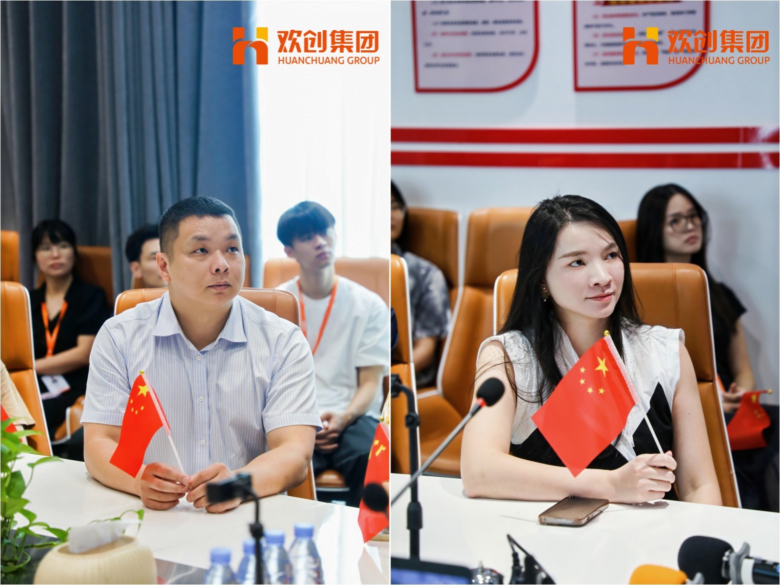 欢创集团总部组织全体员工共同收看直播,一起见证这一庄严时刻!